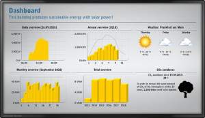 Shows a daily view of the power yield and optionally the power consumption of the building.
