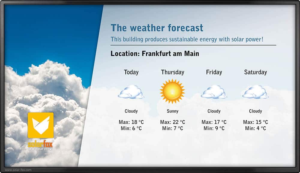 The basic package of a Solarfox® display includes all the following slide modules. These are individual views which can be individually configured and multiplied within a slideshow.