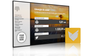 Nos panneaux d'affiches photovoltaïques offrent des interfaces pour de nombreux enregistreurs de données PV et des systèmes de surveillance et ne peut donc pas seulement des onduleurs différents, mais également les fabricants Cross visualiser plusieurs systèmes photovoltaïques (SMA, Fronius, KACO, SolarEdge, etc.). Ici, l'emplacement de l'installation joue un rôle; un avantage majeur sur les écrans numériques traditionnels car elle démontre les performances actuelles, l'énergie quotidienne, le revenu mensuel, le rendement annuel et les rendements totaux qui peuvent être visualisés sur le grand écran photovoltaïque. La récupération des données avec le fabricant ou le système de surveillance comme le Journal-solaire à partir du portail de surveillance de l'onduleur concerné.